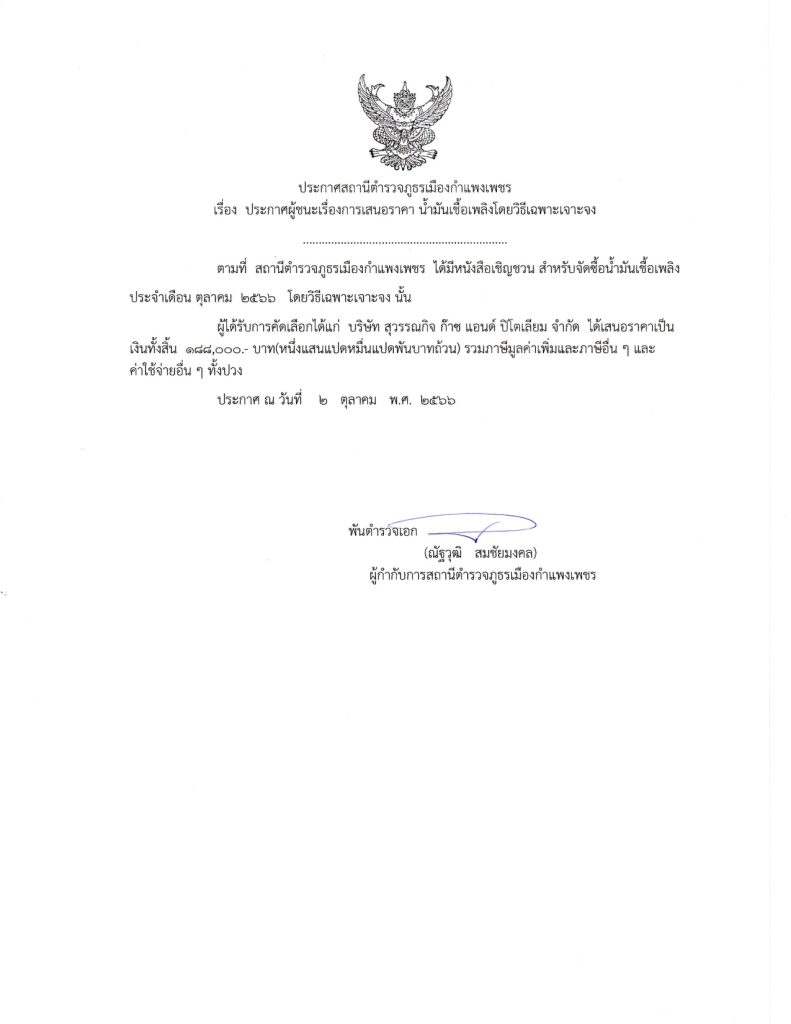 ประกาศ สถานีตำรวจภูธรเมืองกำแพงเพชร