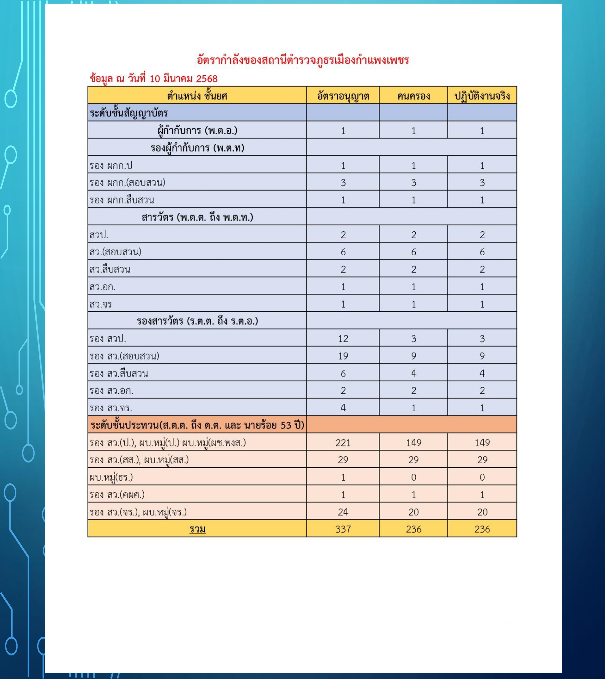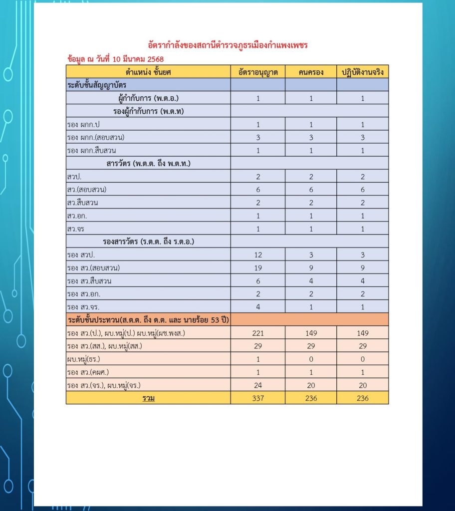 คำสั่ง สถานีตำรวจภูธรเมืองกำแพงเพชร ที่ 5/2567 เรื่อง กำหนดหน้าที่ในสถานีตำรวจ